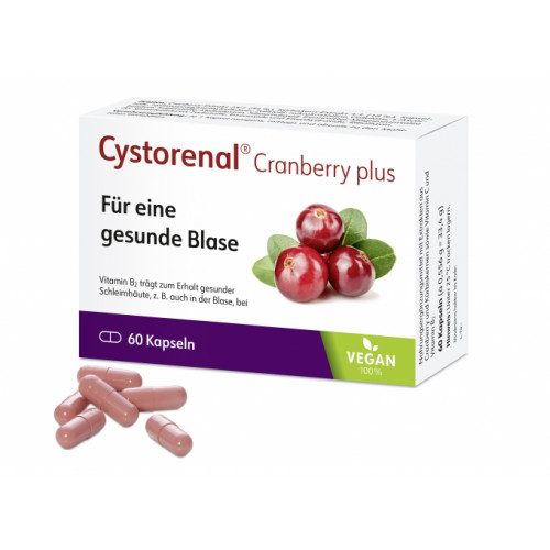 Vitamin C – für die Abwehrkräfte Das in Cystorenal® Cranberry plus Kapseln enthaltene Vitamin C spielt eine wichtige Rolle für die körpereigenen Funktionen des Immunsystems und damit auch für eine gesunde Blase. Gleichzeitig trägt es zum Schutz der Zellen vor oxidativen Schäden bei.
