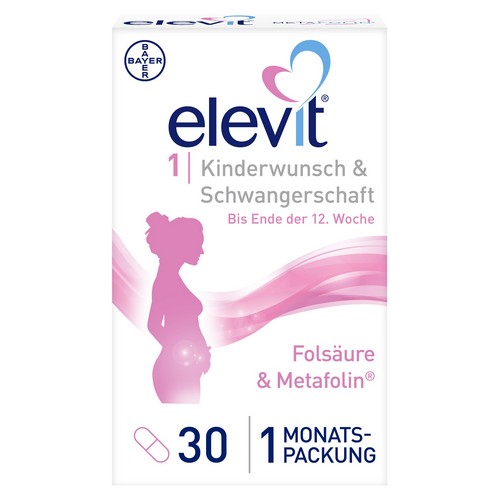 Täglich eine Tablette mit ausreichend Flüssigkeit einnehmen. Wir empfehlen die Einnahme von Elevit® 1 mindestens 4 Wochen vor Eintritt der Schwangerschaft bis zum Ende des 1. Trimesters (Ender der 12. Schwangerschaftswoche).