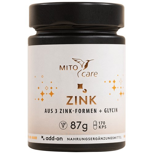 enthält Zink in den drei verschiedenen Formen Zinkgluconat, Zinkpicolinat und Zinkbisglycinat, ergänzt durch die Aminosäure Glycin. Zink ist im Organismus essenziell und fungiert als Cofaktor in über 200 enzymatischen Prozessen. Abgerundet wird das Produkt mit der Aminosäure Glycin, welche im Körper rund 25% der Kollagenmasse ausmacht.