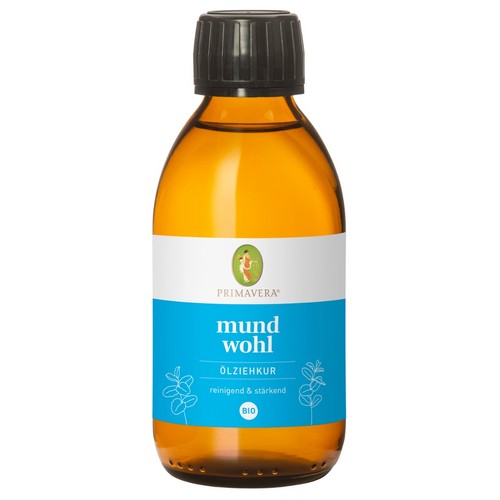 In der Mundwohl Ölziehkur bio vereint sich das wertvolle Wissen der Aromatherapie mit den Lehren des Ayurvedas in einer wirkungs- und geschmackvollen Rezeptur. Das Ergebnis ist eine reinigende Komposition in 100 % naturreiner Bio Qualität. Wertvolles Sesam-, Kokosöl als traditionell empfohlene Pflanzenöle werden kombiniert mit dem fruchtig schmeckenden Sanddornfruchtfleischöl. Das Öl hat die Neigung, in alle Lücken, Spalten und Zwischenräume zu gelangen und kann so regelrecht schwer zugängliche Zahnzwischenräume und Zahnfleischtaschen erreichen. Zudem wird durch die Kau- und Ziehbewegung die Durchblutung des Zahnfleisches verbessert und seine Selbstheilungskraft gestärkt. Ergänzt wird die Rezeptur um, die in der Naturheilkunde für ihre Wirkungsweisen bekannten ätherischen Öle Spearmint, Ingwer, Kardamom und Zitrone. Das tägliche Ölziehen wird auf Grund der angenehm würzig frischen Rezeptur von einer äußerst gewöhnungsbedürftigen Spezialbehandlung zu einer gesunden Gesundheits- und Schönheits-Routine, die den Körper sowie die Mund- und Zahngesundheit nachhaltig stärkt. Für starke Zähne und gesundes Zahnfleisch, denn gesund beginnt im Mund.