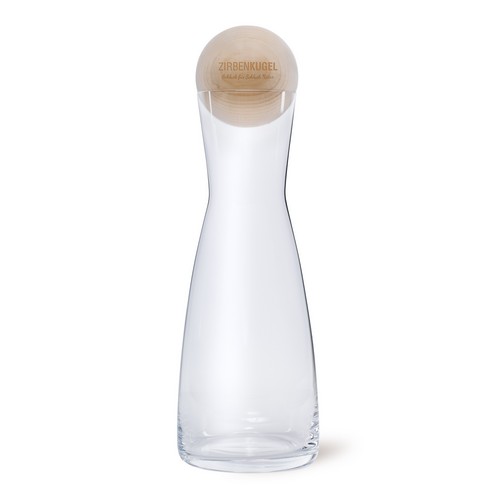 1 Liter Design Wasserkaraffe aus dem Hause "Spiegelau", (Riedel Glas). Extra dünnes Glas, formschön, robust, erhöhte Bruchfestigkeit, Spülmaschinen geeignet Label mit Wirkungsweise und Gebrauchsanweisung attraktiver Geschenkkarton 70mm ZirbenKugel aus langsam gewachsenem ZirbenHolz, mit Gravur „Blume des Lebens“