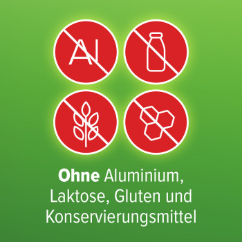 Hinweis für Diabetiker: 1 Kautablette enthält bis zu 0,56 g Sorbitol. Kann bei übermäßigem Verzehr abführend wirken.